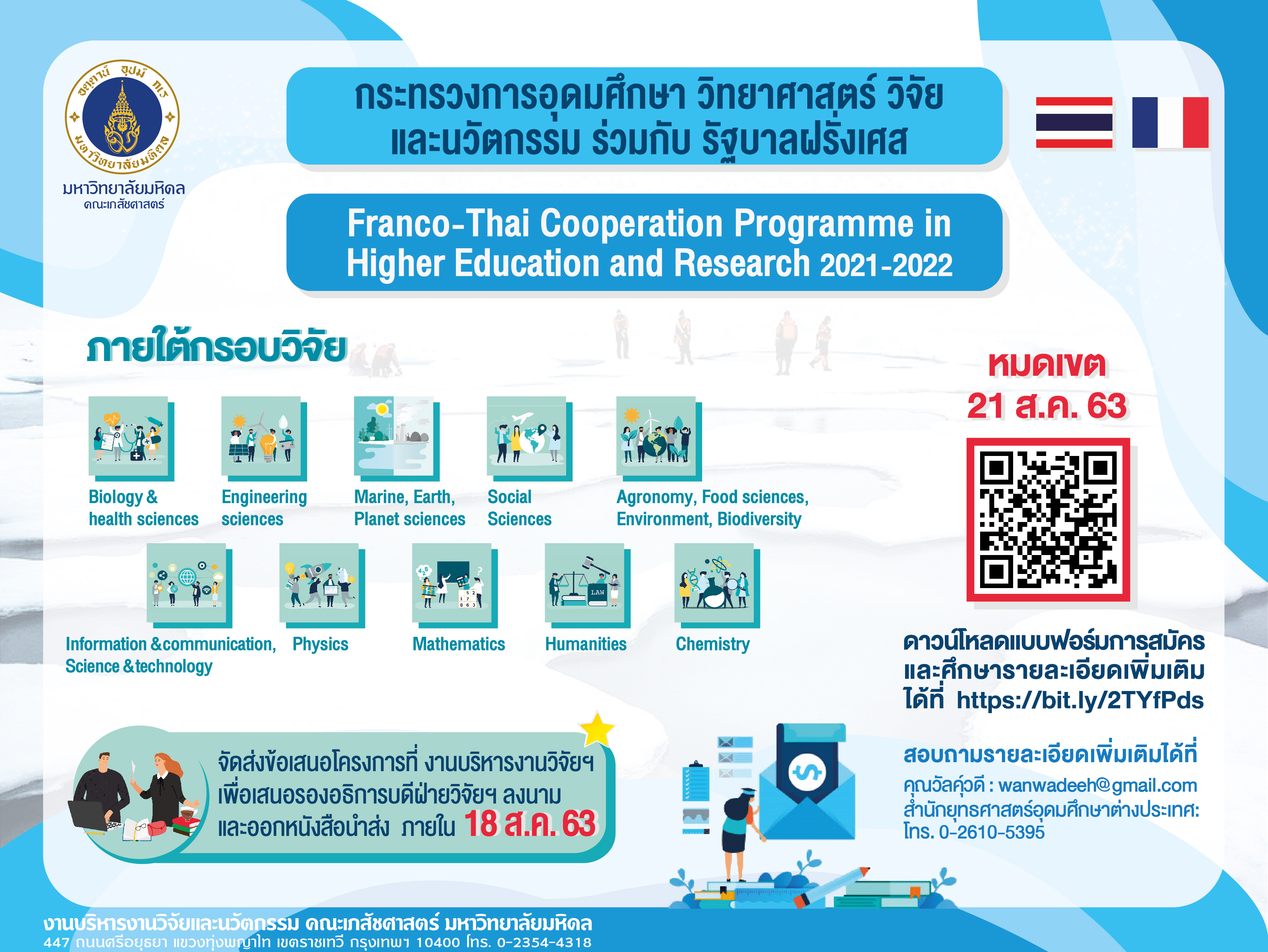 ประชาสัมพันธ์รับสมัครข้อเสนอโครงการ Franco-Thai ปี 2564-2565Created by สวรส ผลอาจ เปิดดูแล้ว 205 ครั้ง Preview |