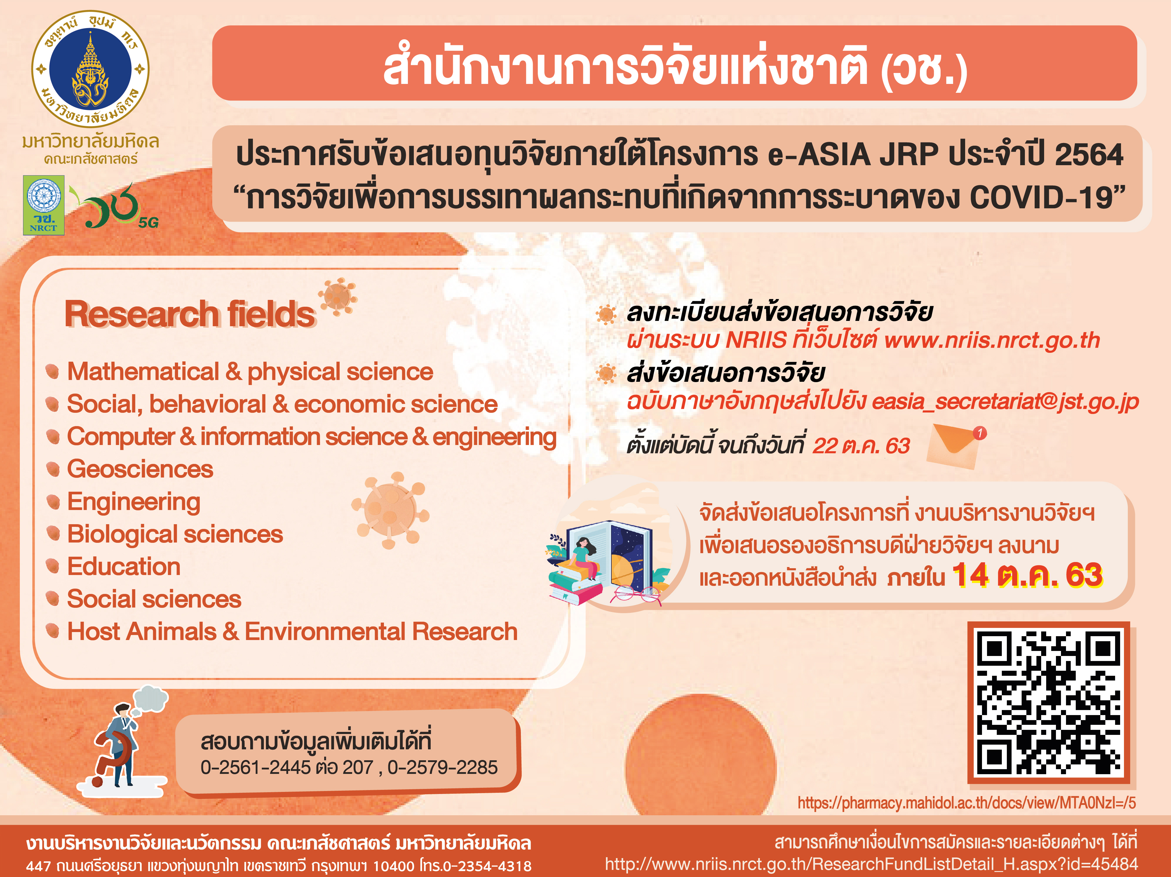 ประกาศทุน e-ASIA Covid 19Created by สวรส ผลอาจ เปิดดูแล้ว 145 ครั้ง |