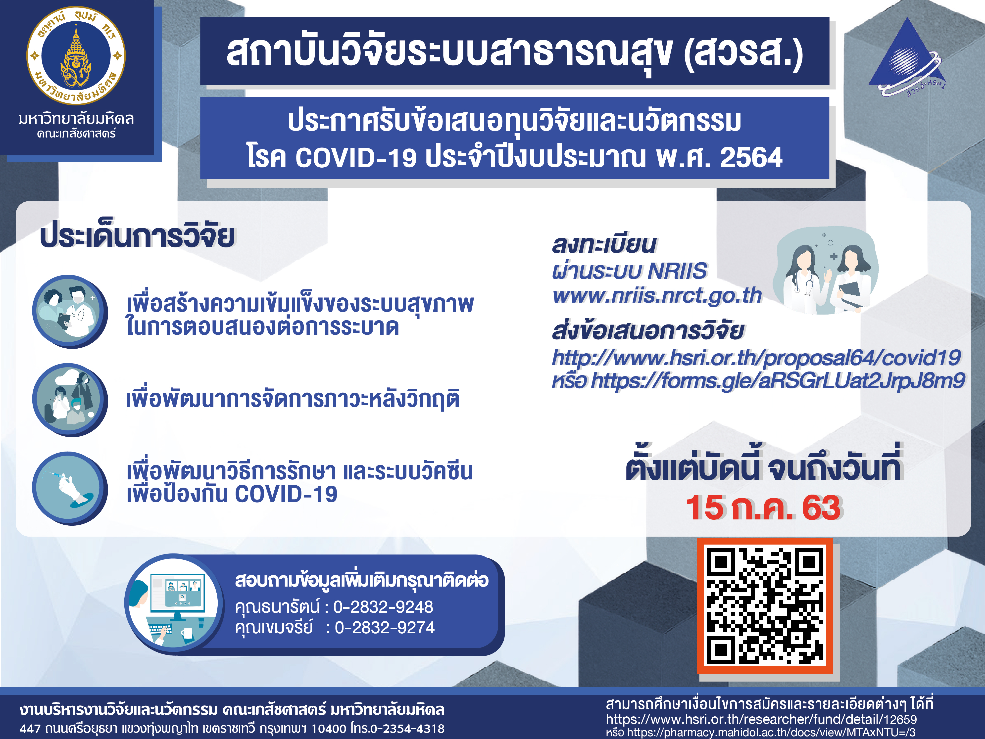 ประกาศรับสมัครทุนวิจัยและนวัตกรรมโรค COVID-19 ปี 2564 (สวรส.)Created by สวรส ผลอาจ เปิดดูแล้ว 184 ครั้ง Preview |