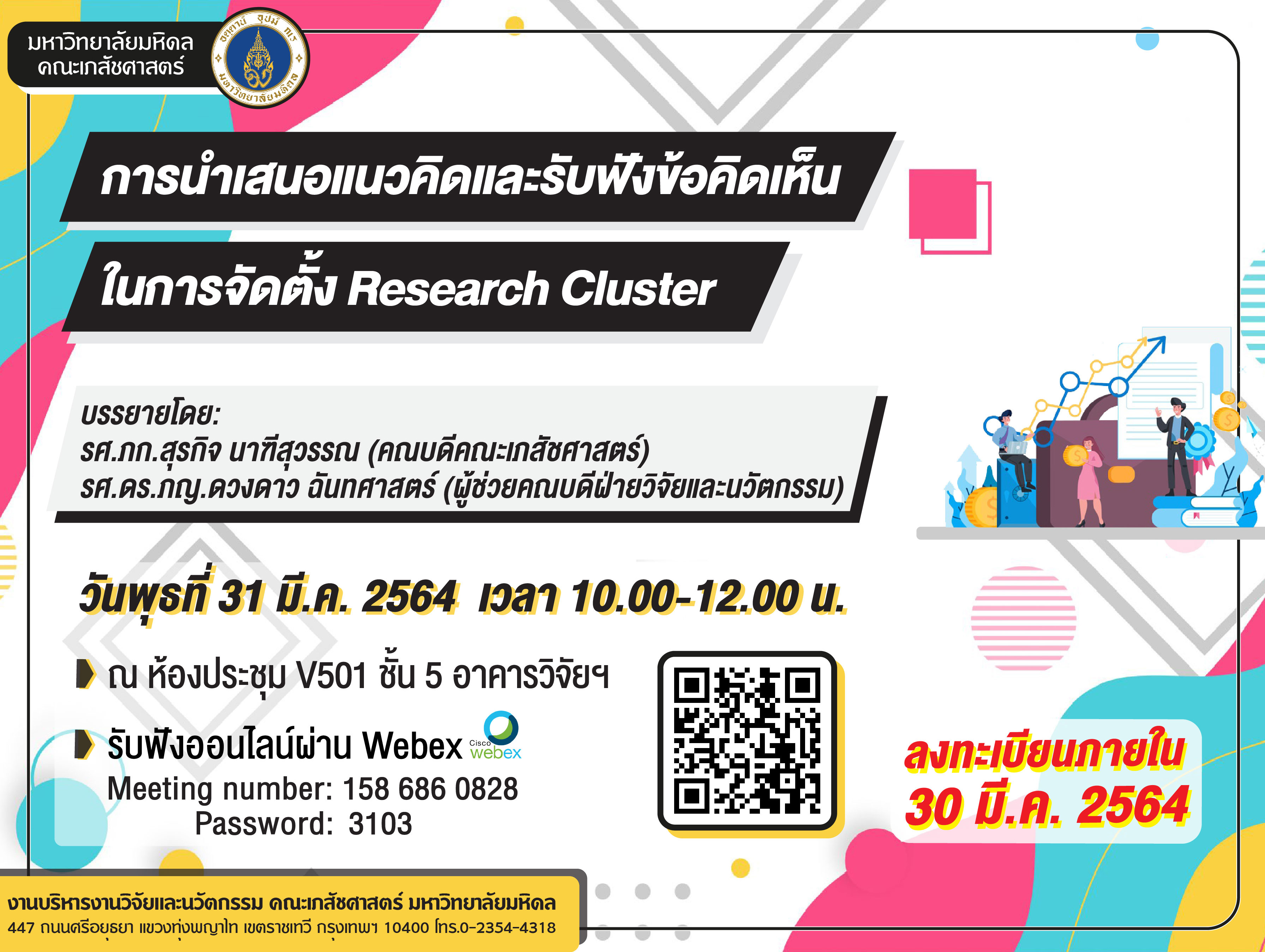 ![]() | งานประชุมการนำเสนอแนวคิดและรับฟังข้อคิดเห็นในการจัดตั้ง Research Cluster (31 มี.ค. 2564, 10.00-12.00 น.) | ![]() | ![]() | ![]() |