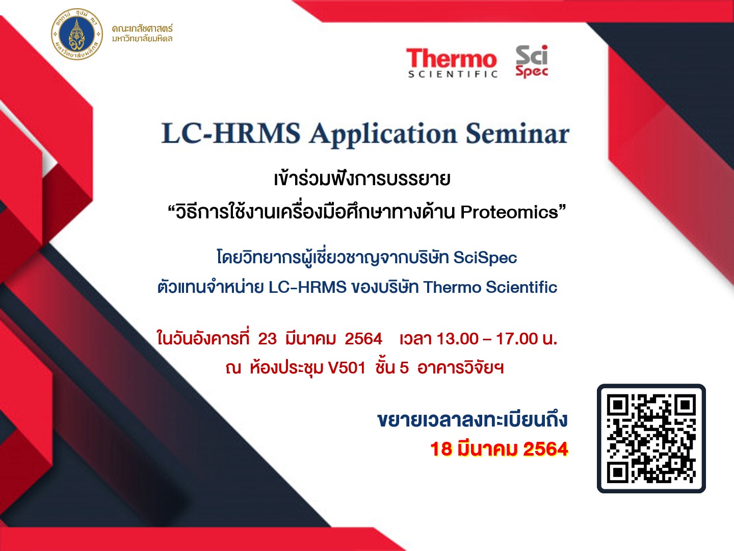 ประชาสัมพันธ์การบรรยายวิธีการใช้งานเครื่องมือศึกษาทางด้าน Proteomics (LC-HRMS)Created by สวรส ผลอาจ เปิดดูแล้ว 189 ครั้ง Preview |