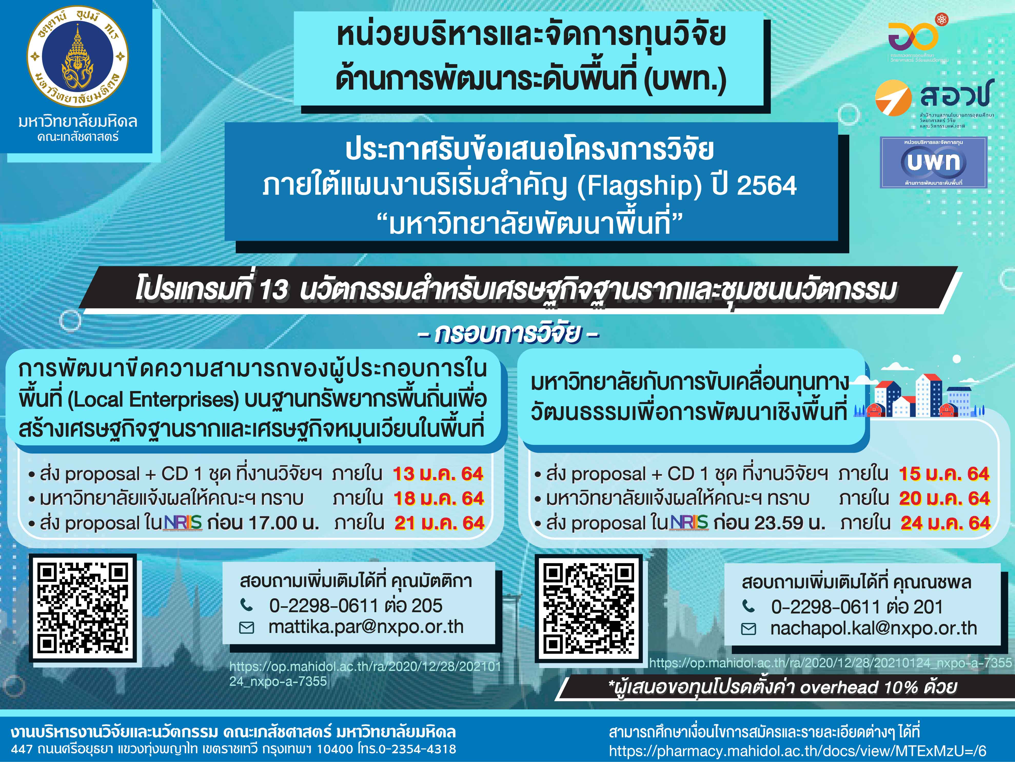 ประชาสัมพันธ์ เปิดรับข้อเสนอโครงการวิจัย ภายใต้โปรแกรมที่ 13 นวัตกรรมสําหรับเศรษฐกิจฐานรากและชุมชนนวัตกรรม ปี 2564แผนงานริเริ่มสำคัญ (Flagship) “มหาวิทยาลัยพัฒนาพื้นที่” Created by สวรส ผลอาจ เปิดดูแล้ว 197 ครั้ง Preview |