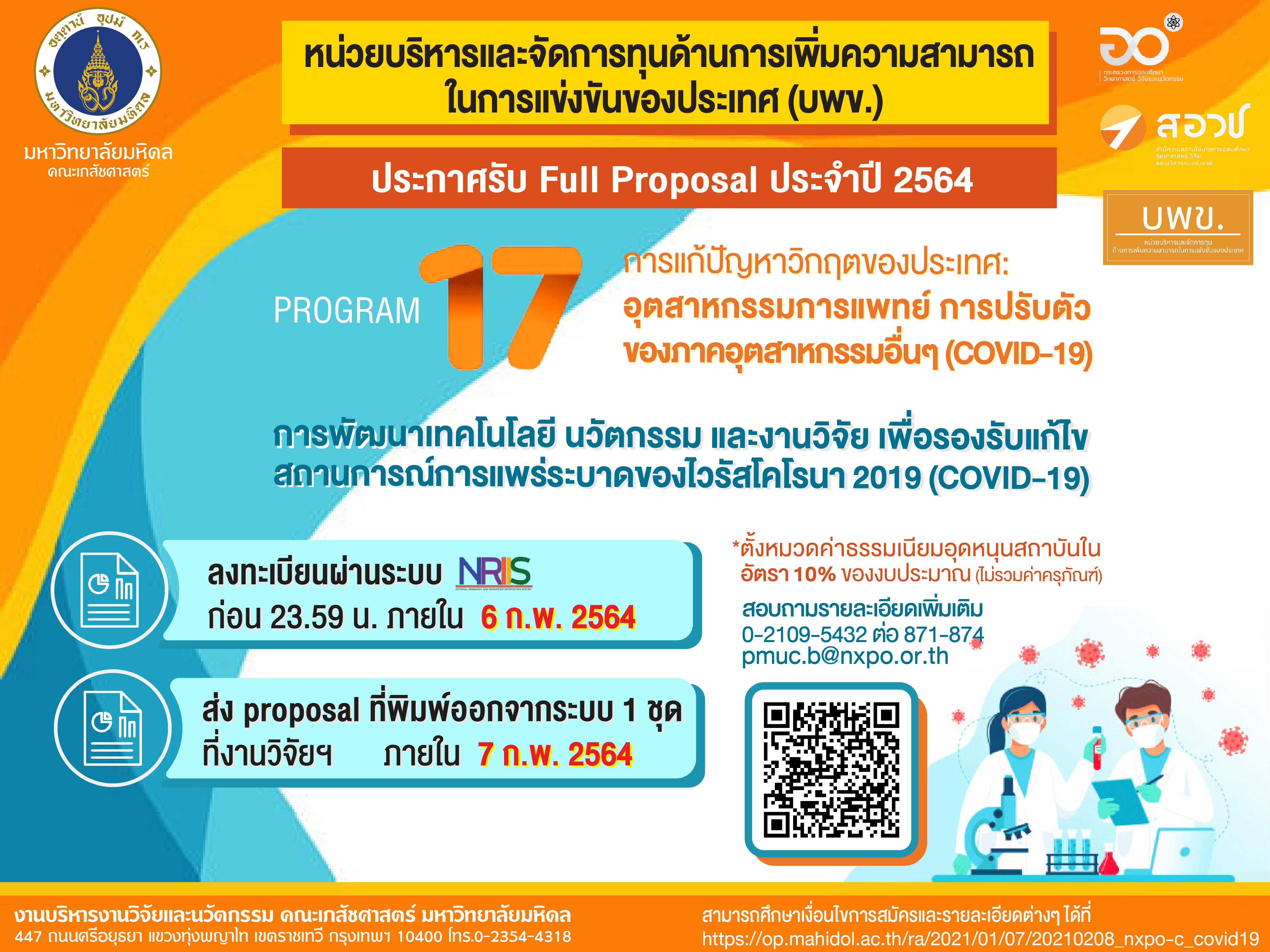 ประชาสัมพันธ์ เปิดรับข้อเสนอโครงการวิจัยฉบับสมบูรณ์ (Full proposal) ทุน บพข. COVID-19 ปี 2564Created by สวรส ผลอาจ เปิดดูแล้ว 175 ครั้ง Preview |
