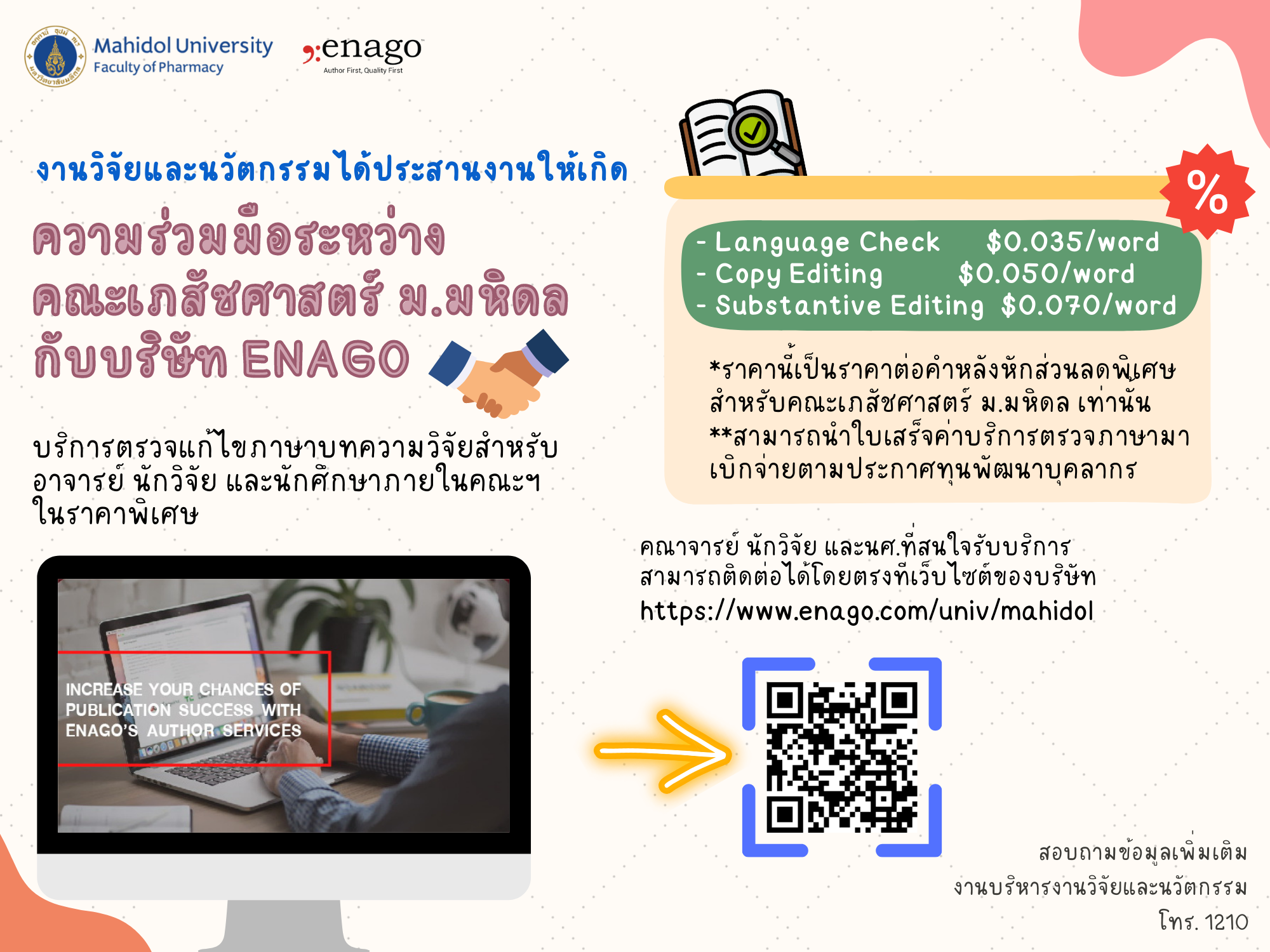 ความร่วมมือระหว่างคณะเภสัชฯ กับ บริษัท ENAGO (บริการตรวจแก้ไขภาษา)