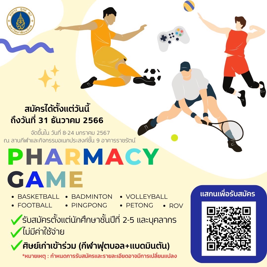 PR ประชาสัมพันธ์ กีฬาภายในสานสัมพันธ์ Pharmacy game ประจำปี 2567Created by คมสันต์ เรืองคง เปิดดูแล้ว 82 ครั้ง Preview |