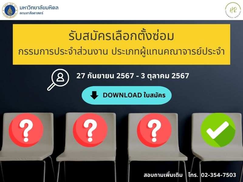 ประชาสัมพันธ์การเลือกตั้งซ่อมกรรมการประจำส่วนงาน ประเภทผู้แทนคณาจารย์ประจำ (27 ก.ย. 67 - 3 ต.ค. 67)Created by ชญานุตม์ นิรมร เปิดดูแล้ว 51 ครั้ง Preview |