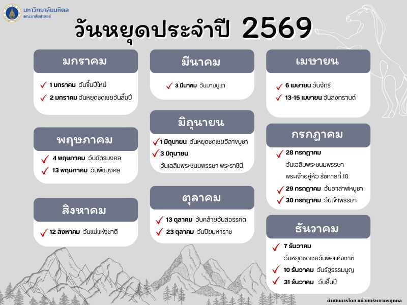 วันหยุดประจำปี 2569Created by อมรรัตน์ เกิดวงษ์ เปิดดูแล้ว 3 ครั้ง Preview |