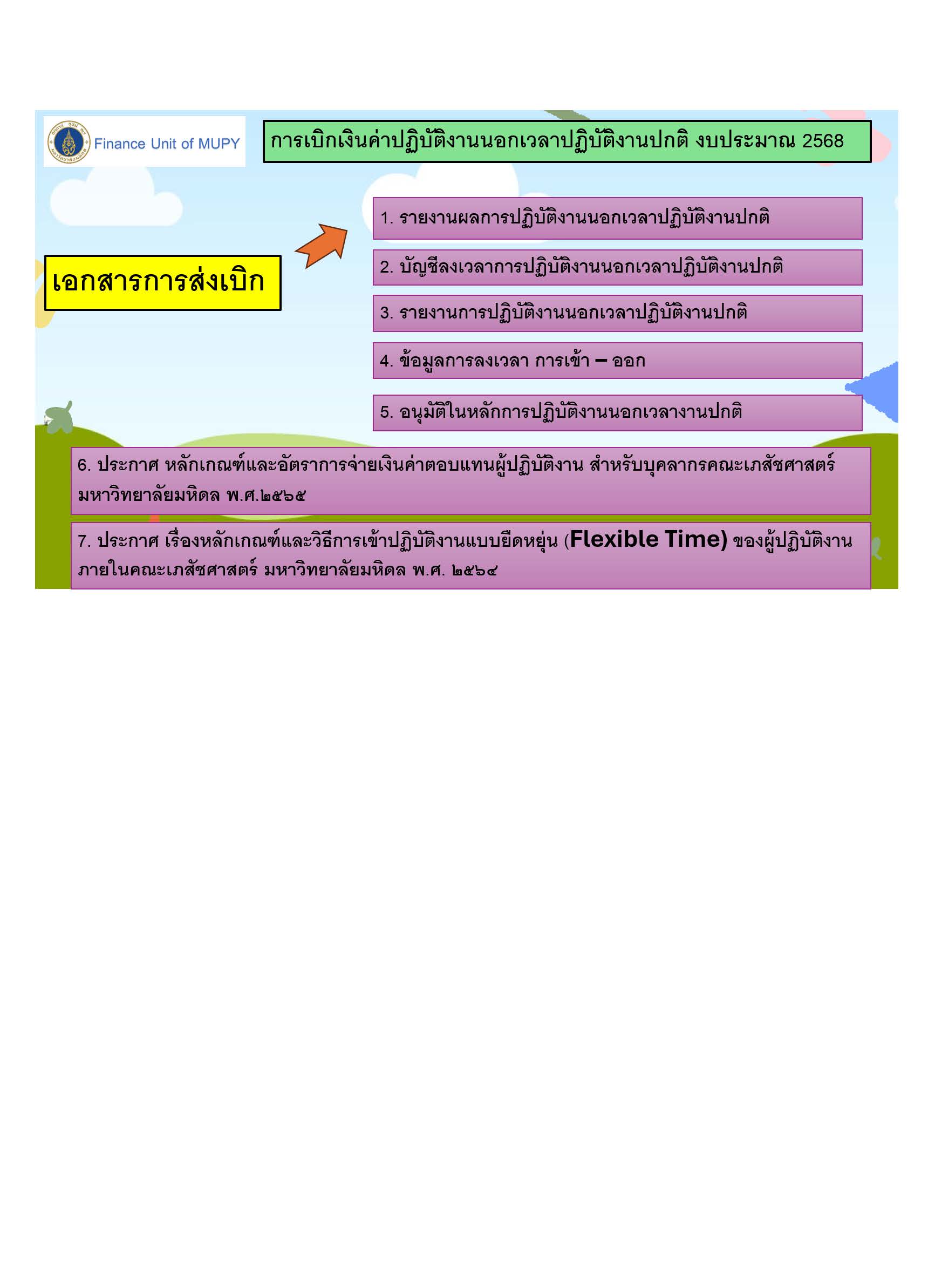 6. ตรวจสอบเอกสารแนบเพิ่มเติมก่อนส่งค่าปฏิบัติงานนอกเวลาปฏิบัติงานปกติCreated by จรรยา จันทร์เจตนาดี เปิดดูแล้ว 109 ครั้ง Preview |